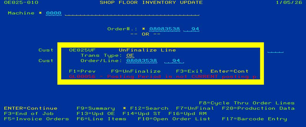 Your current APPLICATION posting period is 01/26 and this order was updated in period 12/25.