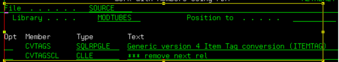 Backup ITEMTAG and ITEMONHD files. CALL MODTUBES/CVTAGSCL will delete the old backup files and copy the ITEMTAG and ITEMONHD file to the backup files and Call CVTAGS conversion program